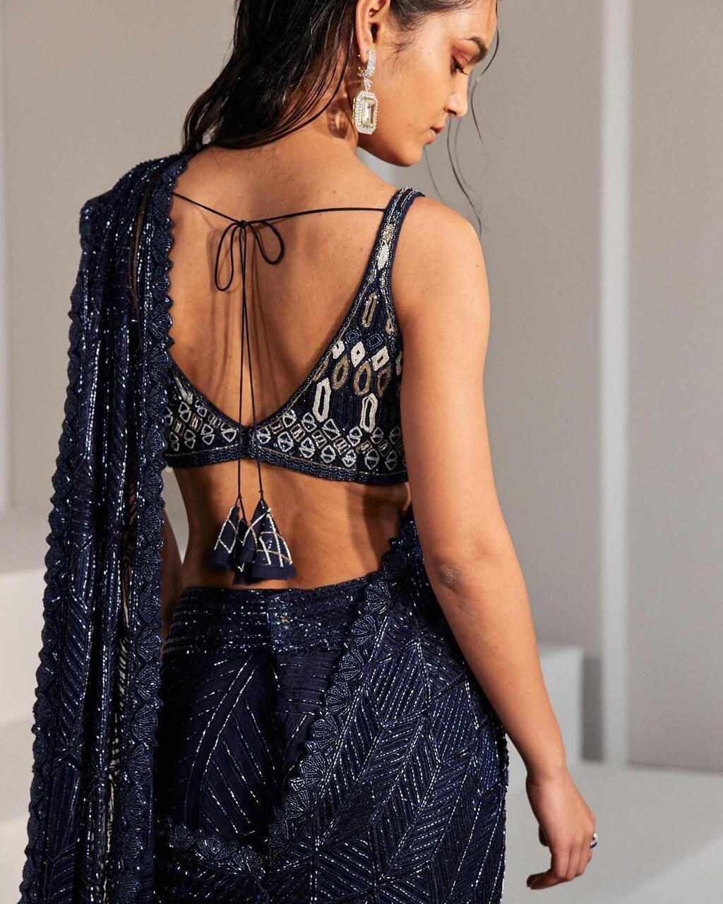 BLOUSE : GEORGETTE WITH FRONT AND BACK HEAVY SEQUENCES EMBROIDERY WORK
