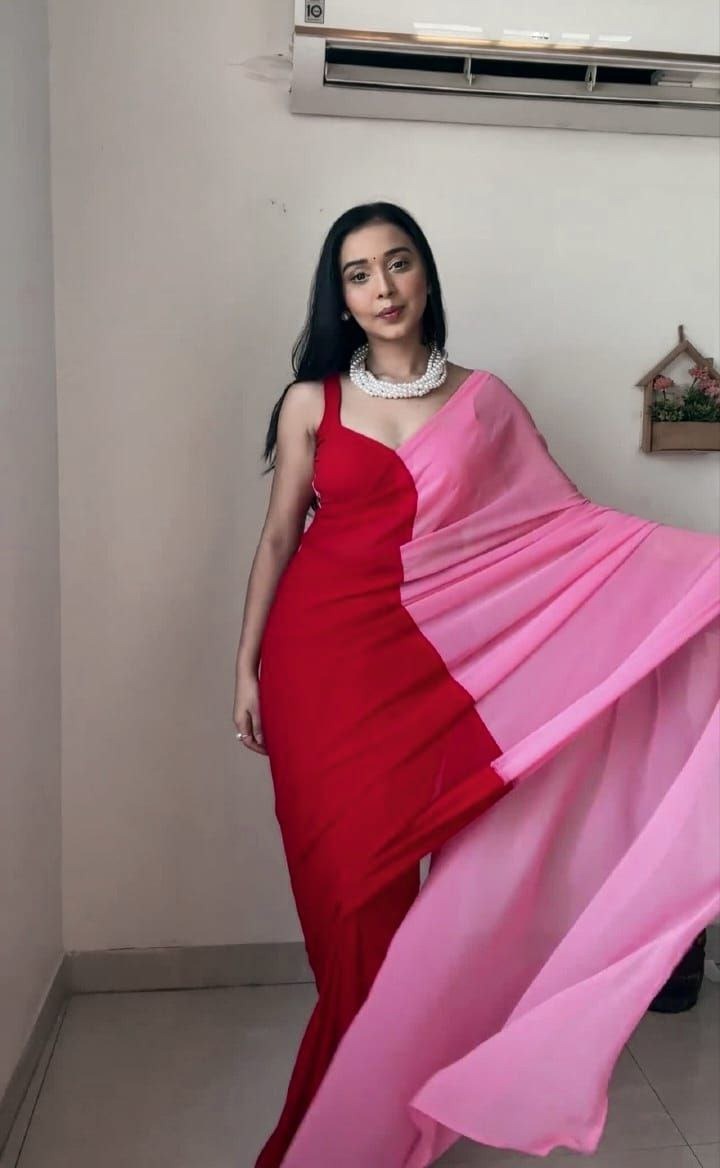 Looking some one for this same colour beautiful Designer Ready to Wear Saree On Faux Georgette Febric and Blouse on also Faux Georgette febric with Inner.