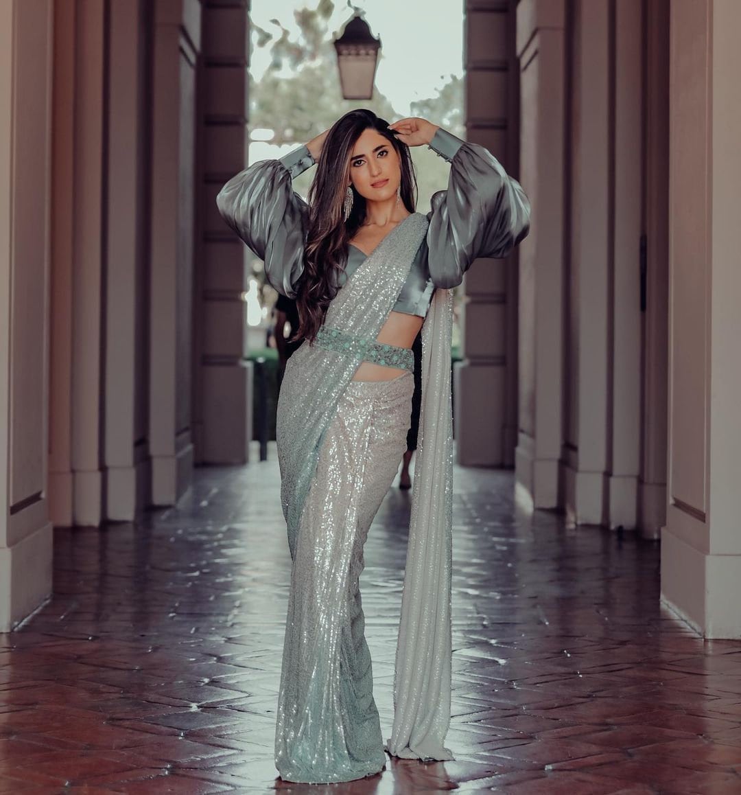 Sabyasachi Style Gray Color Beautiful Georgette With Embroidery Work Saree Party Wear saree Wedding Wear Saree Bold And Beautiful Saree