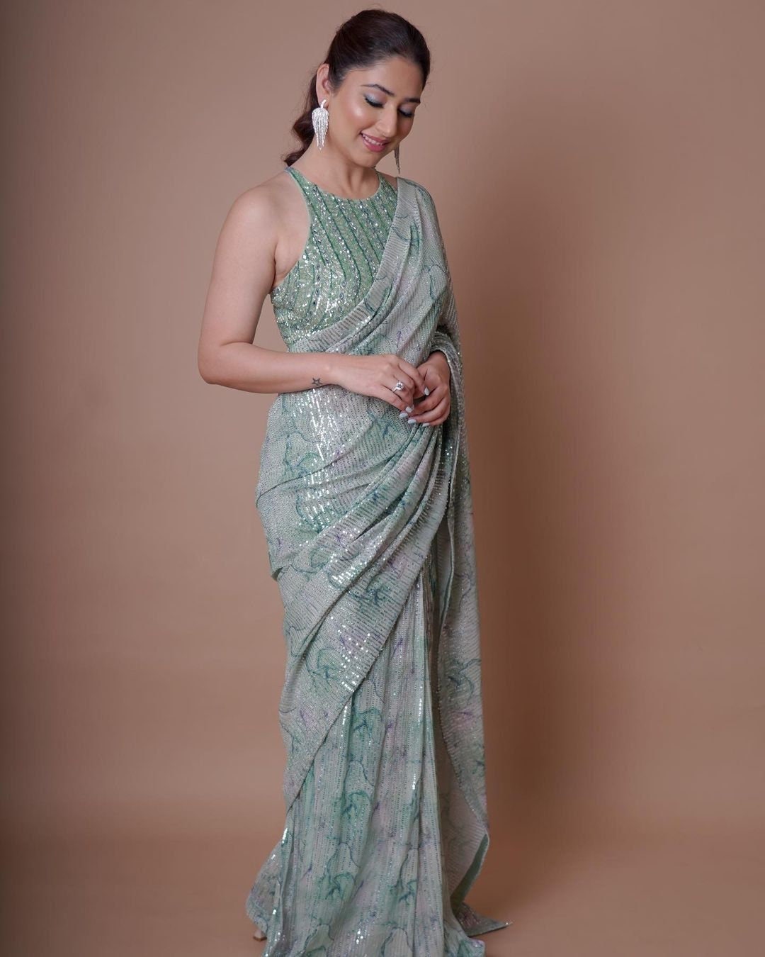 Classic and elegant, this saree will be a perfect addition to your ethnic wardrobe, offering a soothing and pretty vibe the adornment of sequence work makes it impeccable